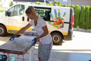 Wir arbeiten nicht nur zusammen, sondern sind ein Team bzw. eine kleine Familie, die zusammenhält, Ehrgeiz entwickelt, Spaß hat und große Leidenschaft für die Malerbranche an den Tag legt. Ein gemeinsames Ziel: Übertreffe die Erwartungen der Kunden Tag für Tag.